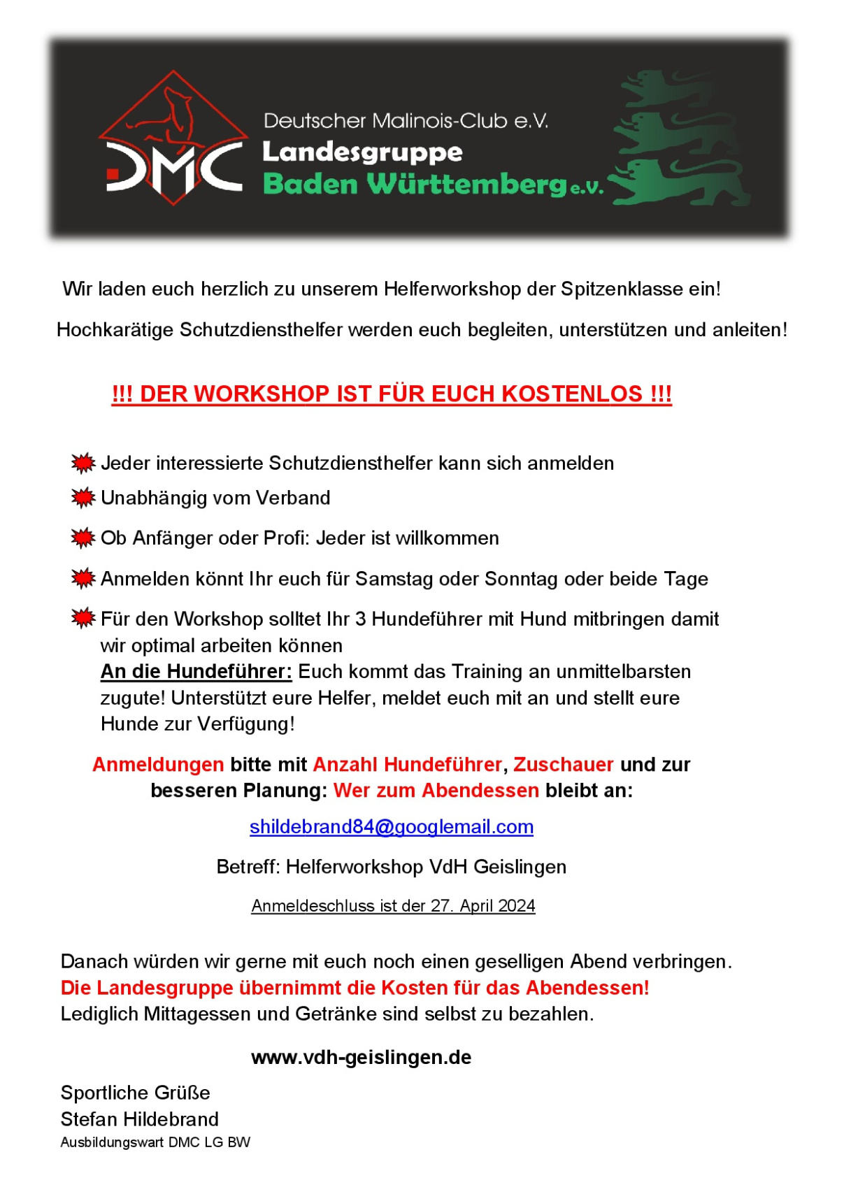 Wenn Ihr zum Essen bleibt, dann meldet euch mit der Personenanzahl unter andreardl@gmx.de an.