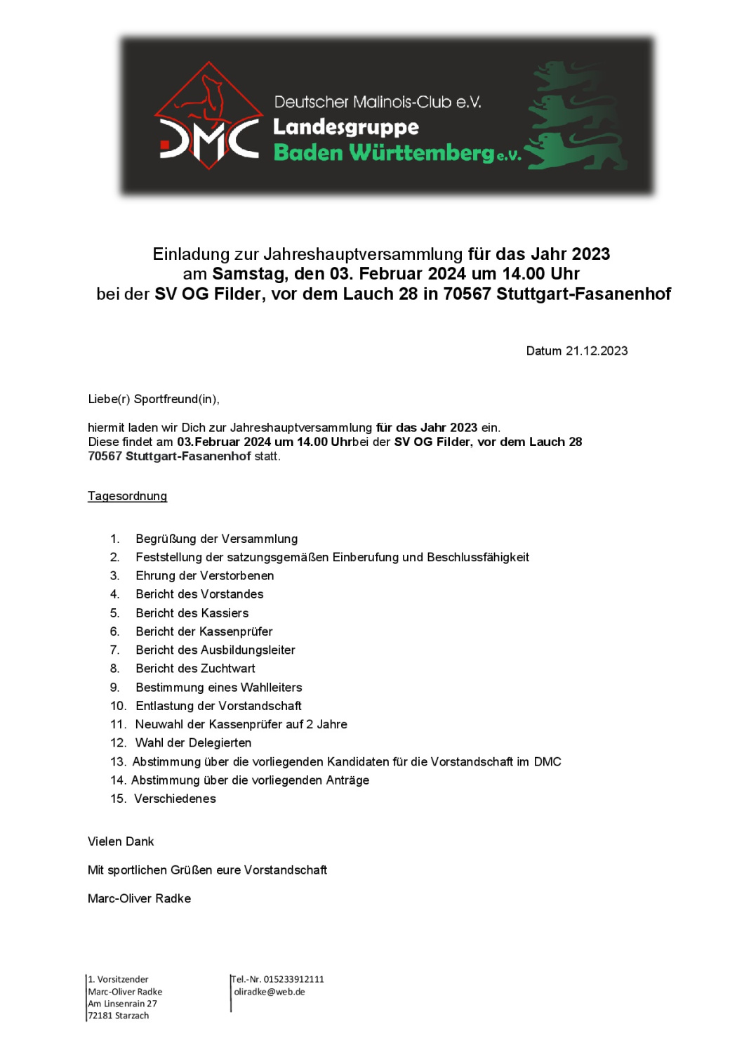 wir laden euch herzlich zu unserer Jahreshauptversammlung am 03.02.2024 bei der SV OG Filder.
